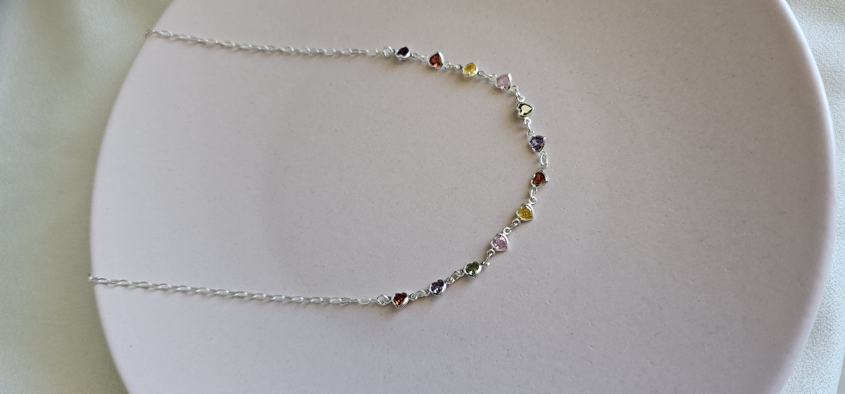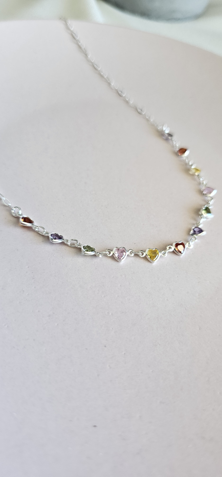 Colar corações em zirconias coloridas Desbloquear preço Produto adicionado ao carrinho Continuar comprando Ir para o carrinho