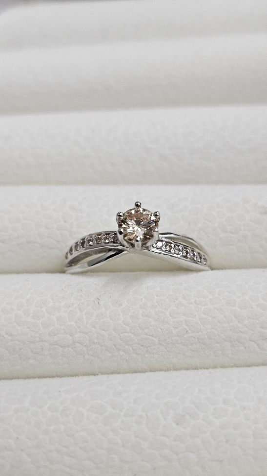 Anel solitário champagne cravejado Desbloquear preço Produto adicionado ao carrinho Continuar comprando Ir para o carrinho