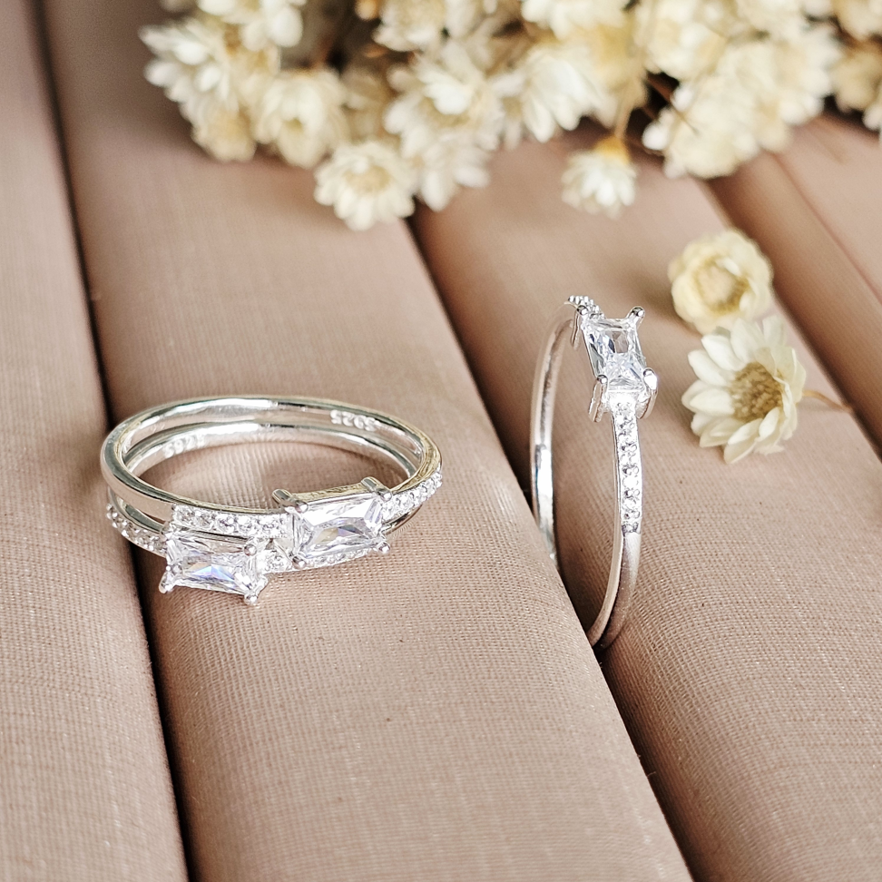 Anel solitario carré cravejado Desbloquear preço Produto adicionado ao carrinho Continuar comprando Ir para o carrinho