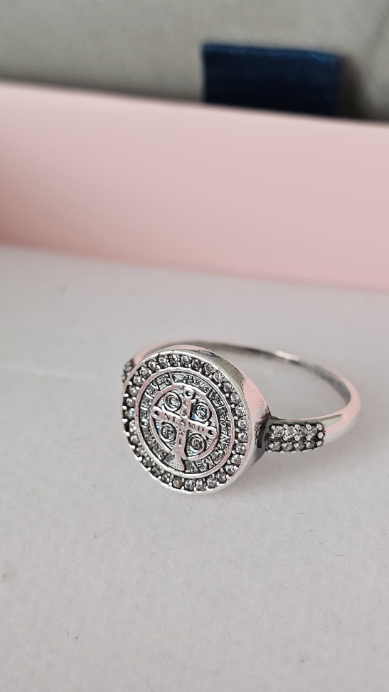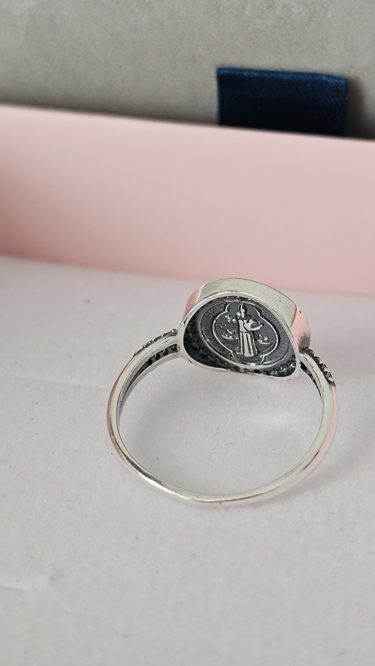 Anel solitário redondo azul cravejado ao redor